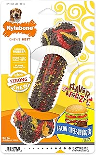 (ナイラボーン) Nylabone ワンちゃん用 ベーコンチーズバーガー風味 骨型 チューイングトイ 犬用 噛むおもちゃ ペット用品 (M(体重16kgまで)) (マルチカラー)