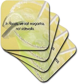 3dRose cst_173284_1 In Florida, We Salt Margaritas, Not Sidewalks Green and Yellow Background-Soft Coasters 4個セット