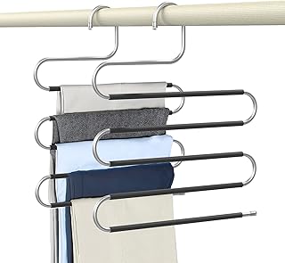ハンガー S字型 Housolution スラックス 収納ラック ズボンハンガー 物干しスタンド 5層 省スペース 滑らない ステンレス 防錆 軽量 多機能 コート スカート スーツ 洋服 タオル ネクタイ 衣類 適用 ハンガー ブラック