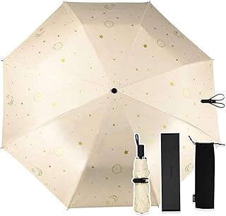 折りたたみ傘,Saiveina 日傘 ニューデザイン 100%UVカット 折り畳み傘 星月太陽柄 8本骨 晴雨兼用傘 耐風撥水 収納袋付き