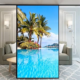 80cm幅x高180cm 窓用フィルム 目隠しシート 海辺 ビーチ 装飾用 カスタマイズ可能 すりガラス調 ガラスフィルム 窓 めかくしシート 断熱遮熱シート目隠し 静電吸着 水で貼る 貼り直し可能