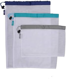 再利用可能な野菜バッグ 紐付き 洗濯機洗い可能 食料品ショッピング トート スナックストレージバッグ シースルーナイロンメッシュ 3サイズ S M L 6パック 9パック 12パック 15パック 21パック