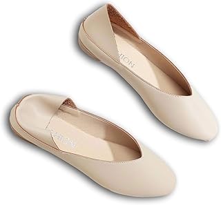 [MILAN & Co.] バブーシュ スリッポン 2WAY フラットシューズ レディース ぺたんこ パンプス PU レザー Vカット ローヒール アーモンドトゥ バレエシューズ スリッパ シューズ 靴 くつ クツ フラット コンフォート プレーン トゥ ソール ヒール ミュール ラウンドトゥ ロー ポインテッド サンダル ロー カット コンフォートシューズ(24.5 cm, アプリコット)