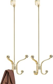 mDesign ロングメタル ドア掛け収納オーガナイザー ラック フック4個 2個パック ゴールド 12968MDCO