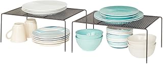 mDesign メタルキッチンパントリー カウンタートップオーガナイザー ストレージシェルフ 盛り上がったキャビネットシェルフラック 食品 皿 皿 ボウル マグ グラス 滑り止め脚 特大 2個パック ブロンズ