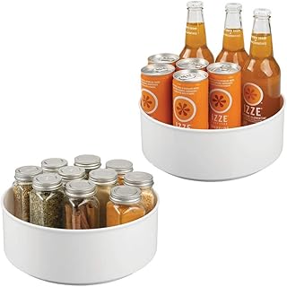 mDesign プラスチックラウンドレイジースーザン 回転式ターンテーブル 食品ストレージコンテナ キャビネット/パントリー/冷蔵庫/カウンタートップ スパイス/調味料/ベーキング用品用スピニングオーガナイザー 2個パック ホワイト