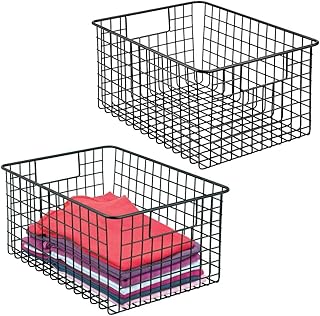 mDesign メタルワイヤー収納バスケット クローゼット用 高さ6インチ 2個パック 12 x 9 x 6 ブラック 12976MDCO