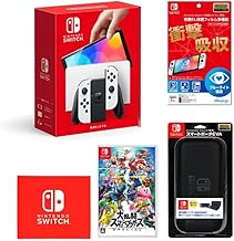 Nintendo Switch(有機ELモデル) Joy-Con(L)/(R) ホワイト+【任天堂ライセンス商品】Nintendo Switch (有機ELモデル)専用有機EL保護フィルム 多機能+Nintendo Switch 専用 スマートポーチEVA ブラック+大乱闘スマッシュブラザーズ SPECIAL - Switch (【Amazon.co.jp限定】Nintendo Switch ロゴデザイン マイクロファイバークロス 同梱)