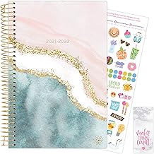 bloom daily planners 2021-2022 学年 手帳 & カレンダー (2021年7月~2022年7月) - 6インチ x 8.25インチ - ウィークリー/マンスリーアジェンダオーガナイザー ステッカーとブックマーク付き - クリスタルブルー