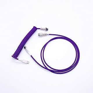 Custom Single Sleeved PET Coiled Type C Cable Coil Spring Cable for Mechanical Keyboard Spiral Cable with GX12 Aviator (0.5M, Purple)