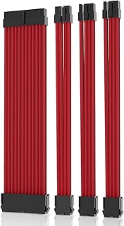 Asiahorse Braided ATX Sleeved Cable Extension Kit for Power Supply Cable Kit, PSU Connectors for ATX CPU GPU Modular Power Supply Unit /1 x 24 P/1 x 8P (4+4) CPU/2 x 8P (6+2) GPU / 30CM 11.8Inch (Red)