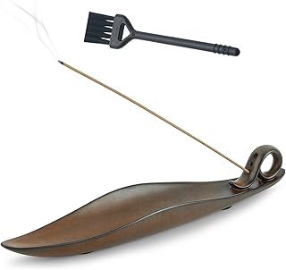 ZADAFINA お香立て 線香立て お香置き 仏壇用皿 香炉皿 線香台 インセンスホルダー インテリア香炉 癒やし香炉 リラックス 疲労回復 横置き 仏壇用 和風 書斎 瞑想 睡眠 おしゃれ 灰掃除用ブラシ付き 陶器製 (ブラウン)